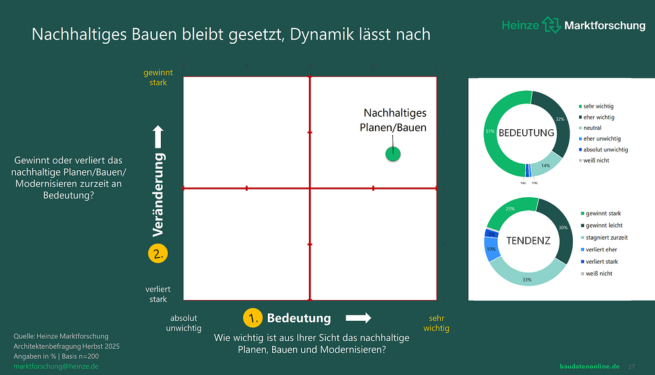 Die aktuelle Untersuchung basiert auf einer repräsentativen Online-Befragung von 200 Architekt:innen und Planenden (August bis September 2025) und umfasst rund 100 Seiten.
